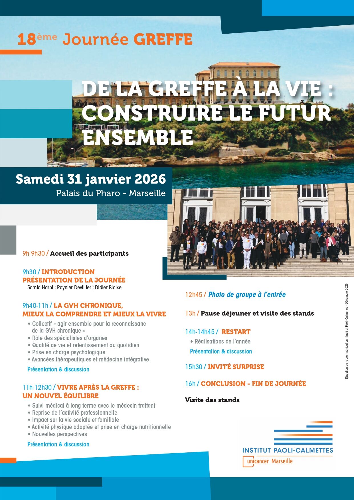 L’IPC vous invite le samedi 31 janvier à sa 18e Journée GREFFE au Palais du Pharo – Marseille
